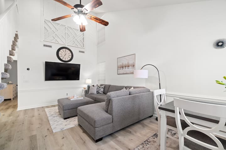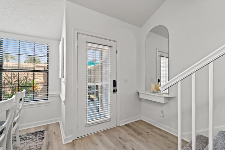 تاون هوم تم تجديده بغرفتي نوم/حمامين، سيرًا على الأقدام إلى الشاطئ
