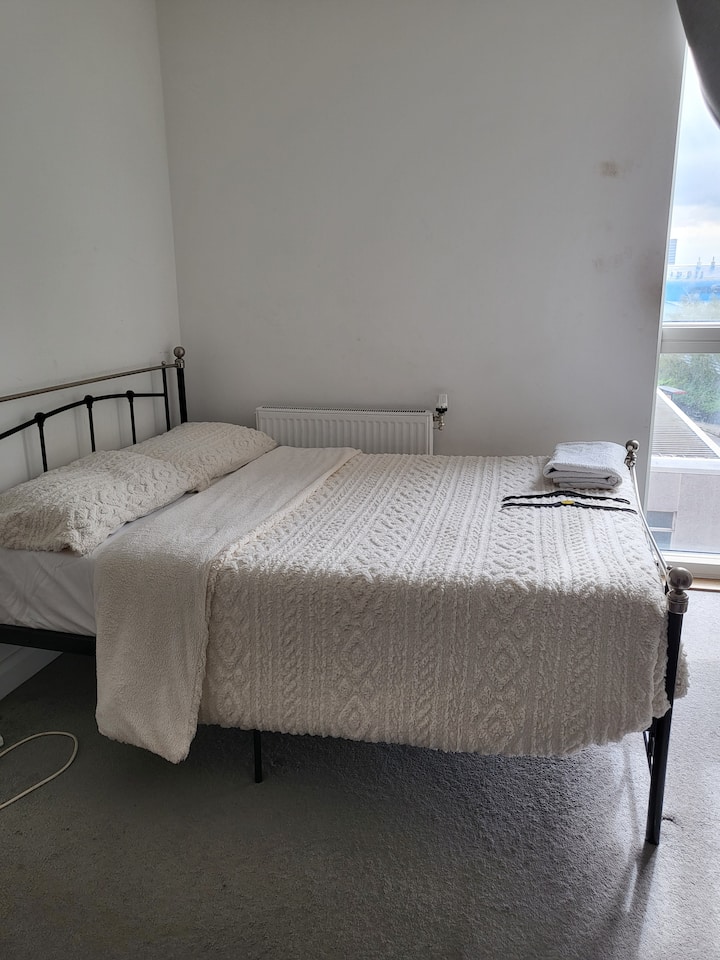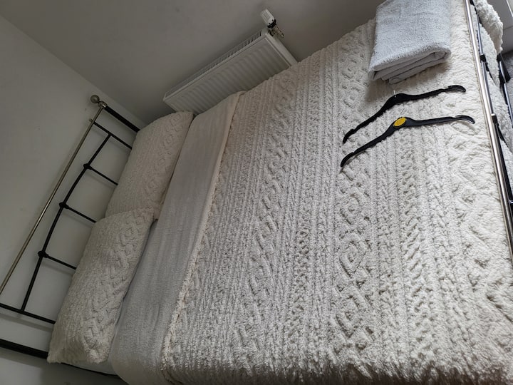 غرفة نوم مزدوجة جميلة وواسعة مع سرير مزدوج واحد