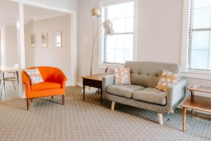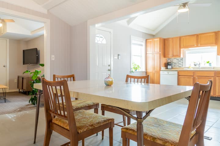 يمكنك المشي إلى المقاهي + دقيقتين إلى وسط المدينة. كوخ مبهج