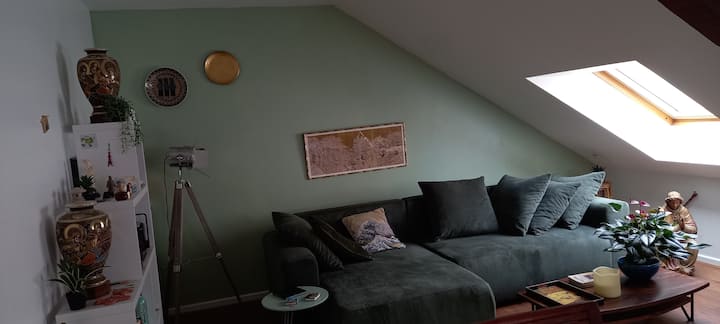 غرفة نوم في شقة علوية جميلة مع موقف سيارات