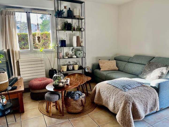 شقة مع تراس وحديقة على بعد 5 دقائق من البحيرة