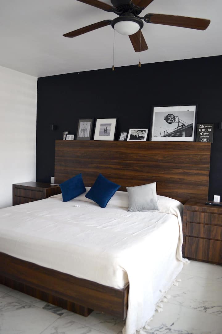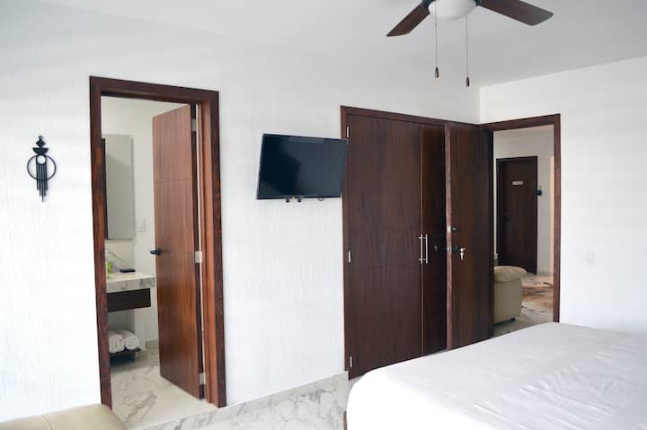 سرير كينج، حمام خاص، مطبخ، تلفزيون، مكيف هواء