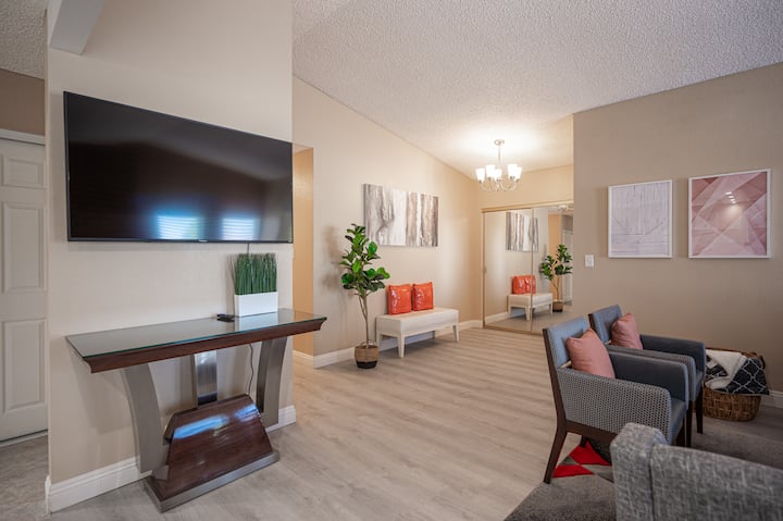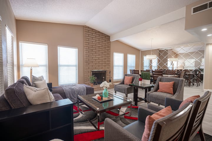ملاذ مكون من 4 غرف نوم مع مسبح وحوض استحمام ساخن على بعد دقائق من ستريب!