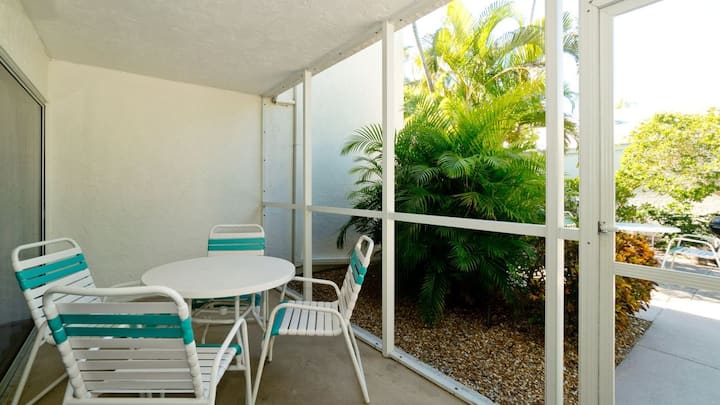 هناك 3 مبانٍ في هذا المجمع المريح. تقع هذه الشقة في مبنى الفناء، وتوجد في الزاوية الخلفية للمجمع، مما يجعلها خاصة للغاية، ولا تزال على مسافة قصيرة سيرًا على الأقدام من الشاطئ.