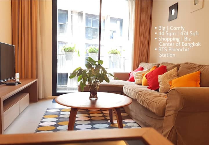 غرفة نوم كبيرة + حوض استحمام | إقامة شهرية | وسط بانكوك | محطة BTS