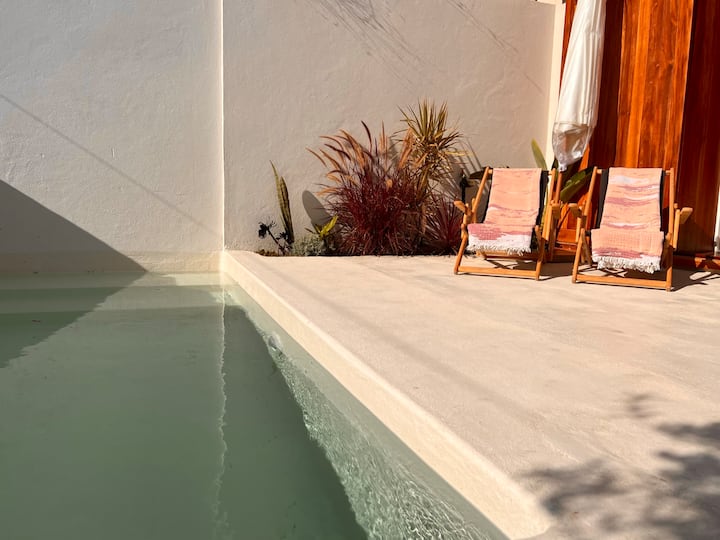 وبهذه الطريقة ، نفكر في منزل على أنه ملجأ ، مع حمام سباحة خاص ، فاخر وبسيط ، رومانسي للغاية ومريح في موقع استثنائي.