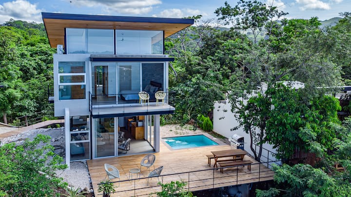 منزل بتصميم عصري على قمة تل يطل على المحيط مع حمام سباحة خاص