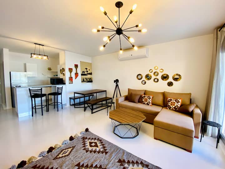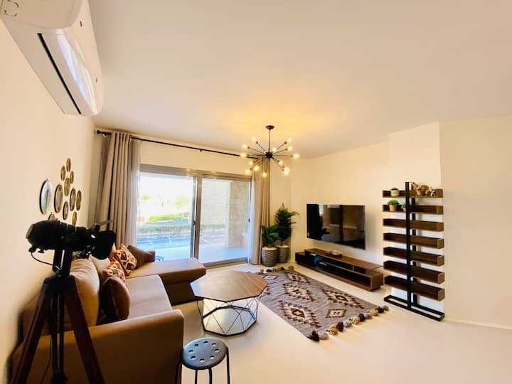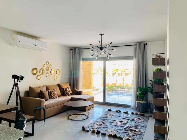شقة أرضية فسيحة بغرفة نوم واحدة في سوان ليك الجونة!