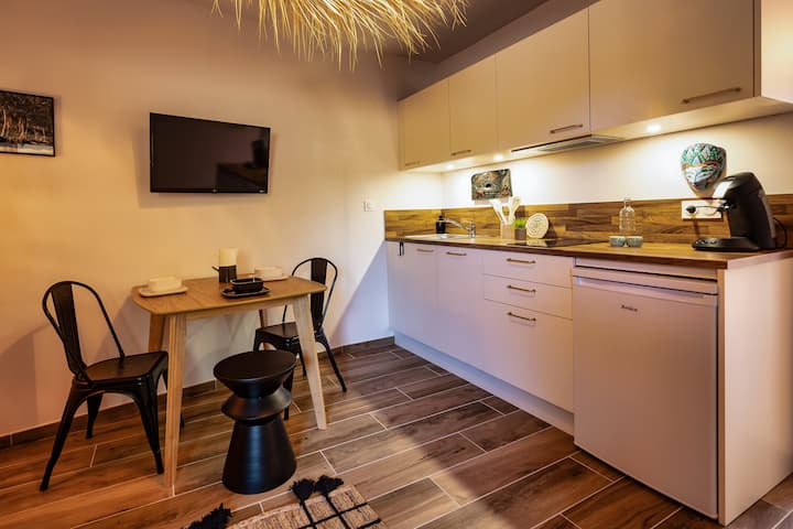 شقة مريحة تتسع لثلاثة أشخاص، شاطئ ومركز للمشي