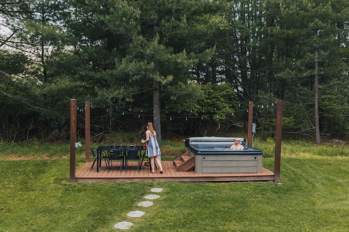 كوخ فني جداري مع بركة وحوض استحمام ساخن