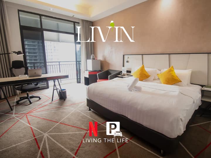 #211 أجنحة كينغ في مدينة كوالالمبور @ حمام سباحة إنفينيتي بإطلالة على مركز كوالالمبور