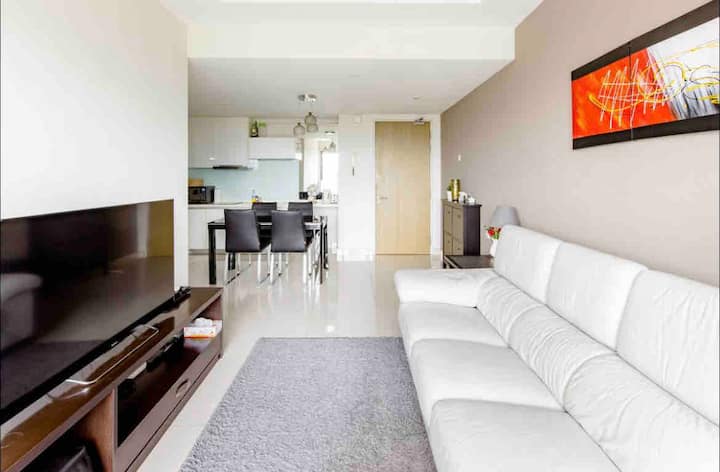 جناح مريح بثلاث غرف نوم، وحمام سباحة وصالة ألعاب رياضية، بجوار كيه تي إم