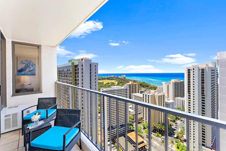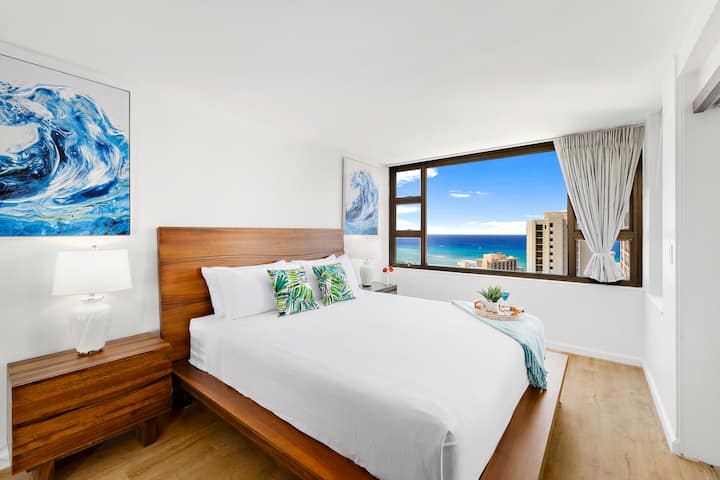 هل أنت مستعد لتجربة الجنة ؟ استمتع بالفخامة في الطابق 36 بإطلالات على المحيط في هذه الشقة التي تم تجديدها بأناقة في وايكيكي بانيان (البرج 2). تنتظرك جنة استوائية على مسافة قريبة سيرًا على الأقدام من الشاطئ والمطاعم الراقية والترفيه.