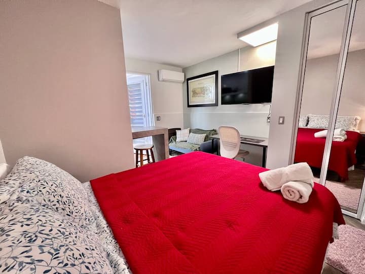 غرفة استوديو في مزرعة على الشاطئ مع حمام سباحة
