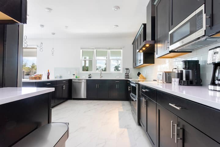 يوفر The Blue Heaven أجهزة راقية غير قابلة للصدأ للمطبخ بأكمله، ونظام Ninja Professional Plus، و Keurig K - Cafe، و Latte، و Cappuccino. سوف تكتشف بار جزيرة مع مقاعد جلدية للاستمتاع بها. المطبخ مجهز بالكامل بجميع مستلزمات الطهي من الخبز والمقالي إلى تقديم الأطباق والأواني. في المطبخ، سوف تجد:
