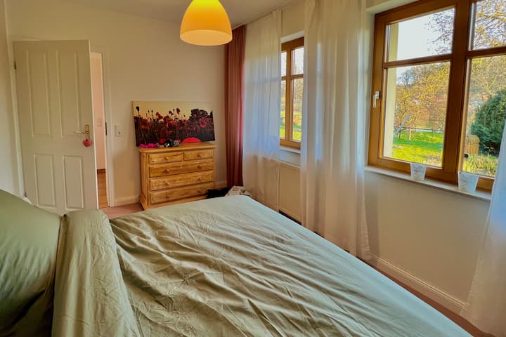 نحن جنس وليزابيث من مارينمونستر الجميلة في ويستفاليا الشرقية. أكثر من 60 عامًا بقليل، نستمتع بالحياة هنا في الريف، لكننا نحب أيضًا السفر حول العالم. منذ أن خرج أطفالنا من المنزل، أدركنا خطتنا لتحويل المساحات المفتوحة إلى شقة صغيرة وهادئة أنيقة. لذلك يسعدنا أن نرحب بكم أخيرًا كضيوف اعتبارًا من مايو 2023.