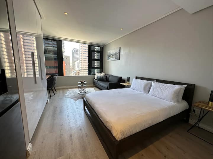 استوديو في وسط كيب تاون، إطلالات، حمام سباحة، بار، صالة ألعاب رياضية
