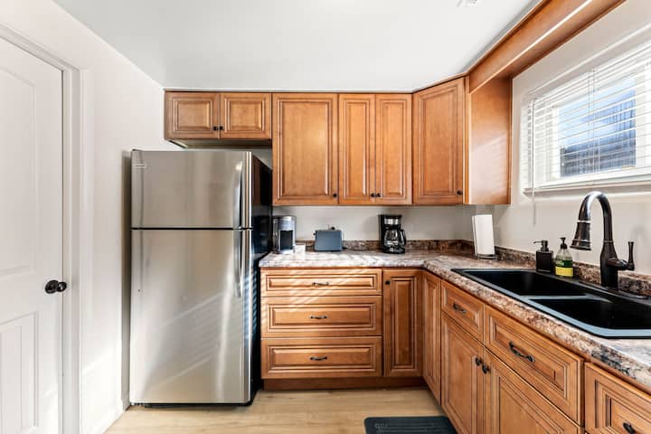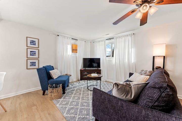 مريح وأنيق! سريران تم تجديدهما، حمام واحد