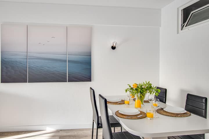 شقة تم تجديدها | 3 دقائق سيرًا على الأقدام>الشاطئ | مكيف هواء | حمام سباحة | واي فاي