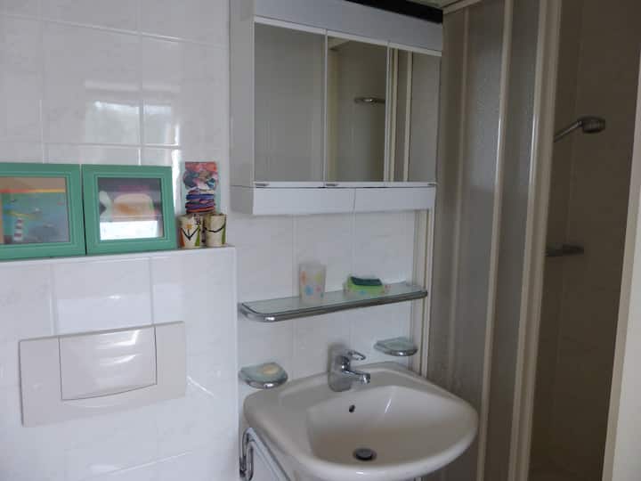 غرفة واضحة حمام خاص في وسط المدينة