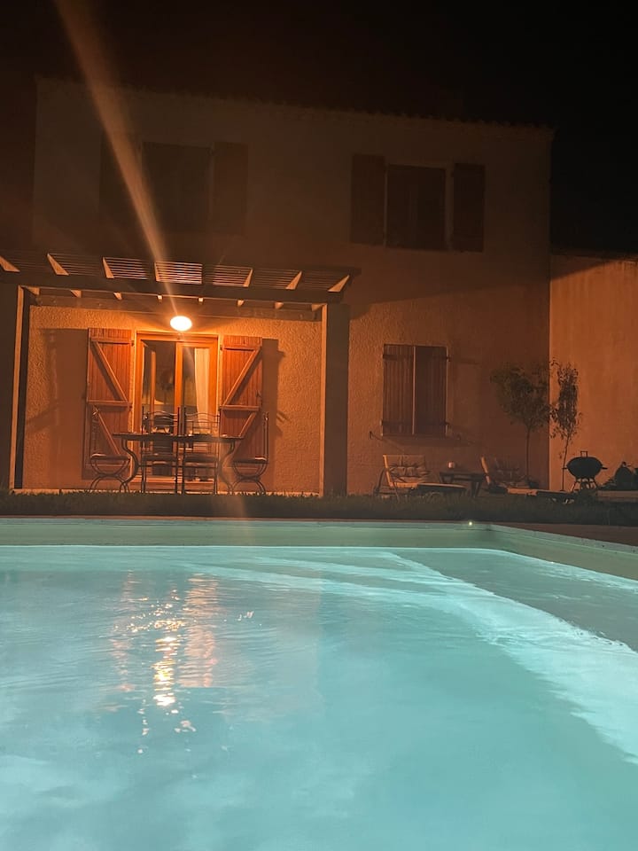 بيت يتسع لـ 6/7 أشخاص مع إطلالة مفتوحة وحمام سباحة خاص