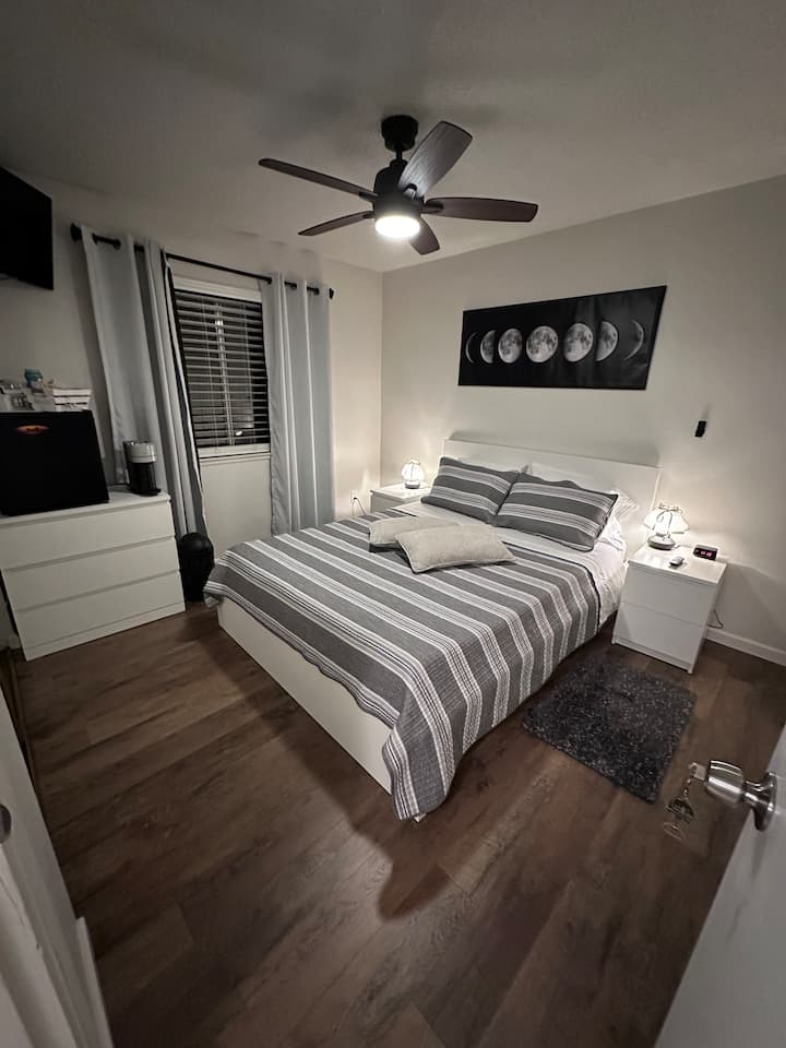 غرفة مع حمام منفصل بالقرب من المطار
