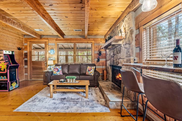 Sweetheart Log Retreat، سرير كينج، أركيد، حوض استحمام ساخن