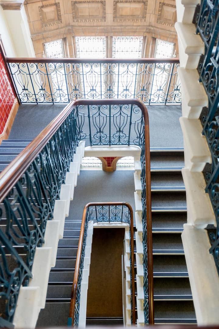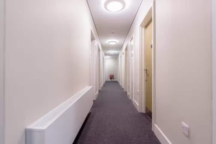 جميع غرف نومنا مجهزة إما بسرير مزدوج أو فردي وخزانة ملابس مع مرآة كاملة الطول ومكتب وكرسي وثلاجة صغيرة. نحن نقدم المياه المعبأة في زجاجات ومناشف ومستلزمات الحمام الأساسية مجانًا. يتم توفير مجففات الشعر في غرفنا المزدوجة ومتاحة عند الطلب لغرف الإشغال الفردية. يرجى ملاحظة أن المبنى ليس مكيفًا ولكن لدينا إمدادات من مراوح المكتب.