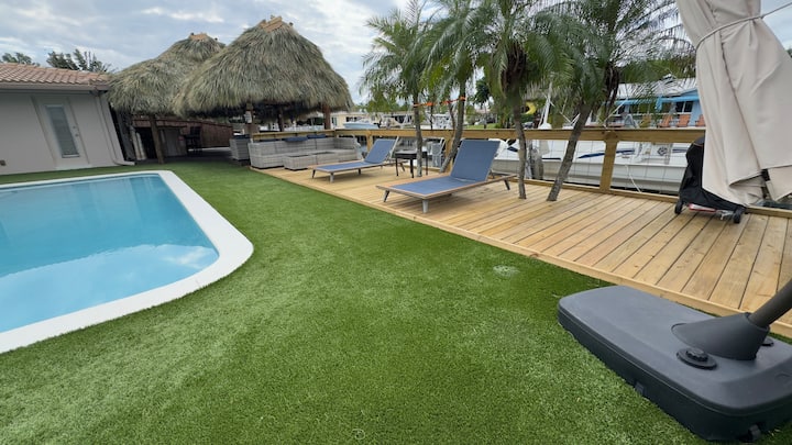 واحة استوائية على الواجهة المائية 3 غرف نوم حمام سباحة وتيكي بار