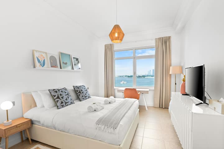 شقة مشرقة مع إطلالة برج العرب والوصول للشاطئ