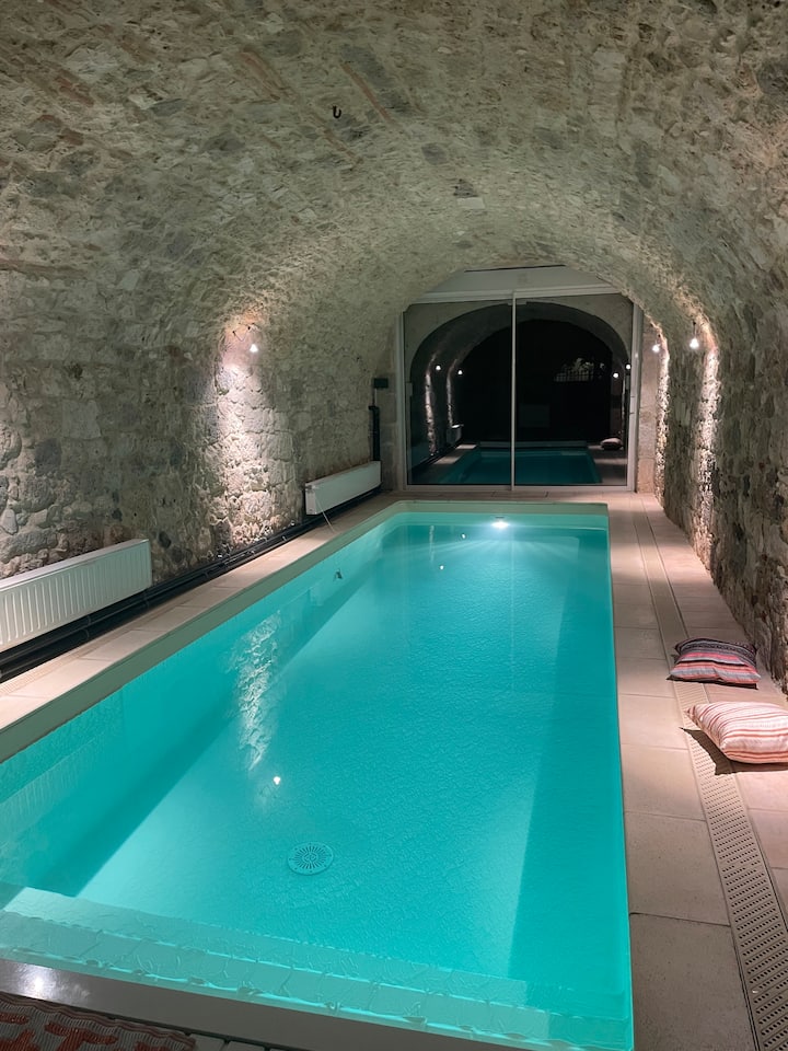 حمام سباحة داخلي خاص - متاح طوال العام ومفتوح لساعات محددة ومُدفّأ
