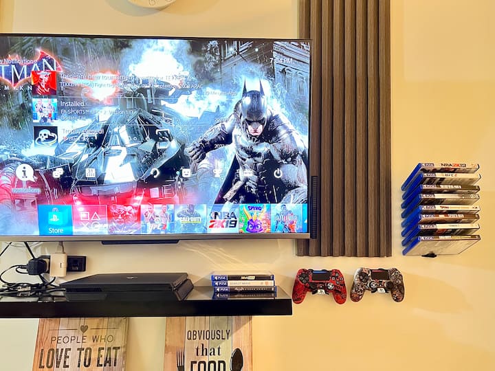شقة عصرية مع سرير كامل الحجم + أريكة سرير، جهاز PS4، نيتفليكس