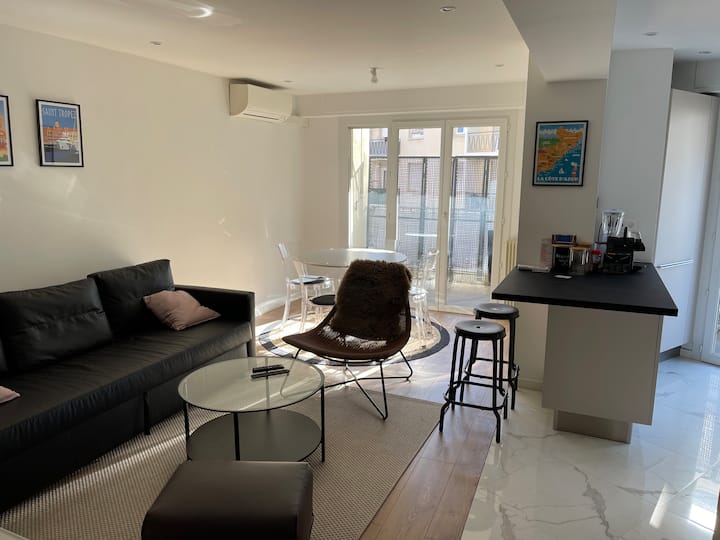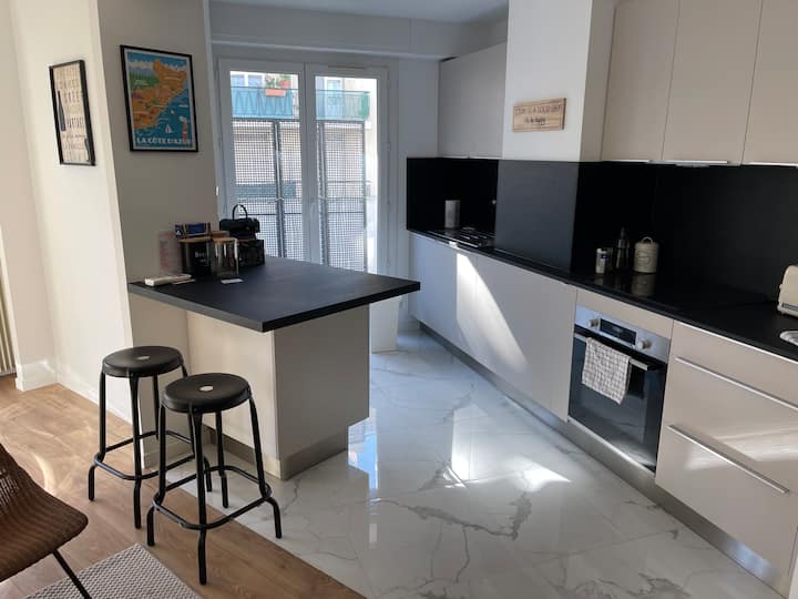 شقة بغرفتي نوم مع موقف للسيارات، بالقرب من Gare والشاطئ
