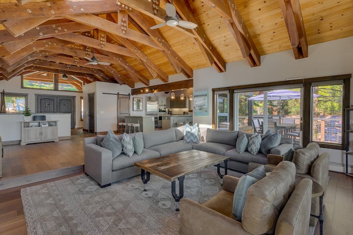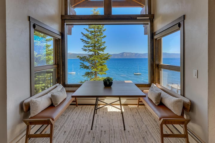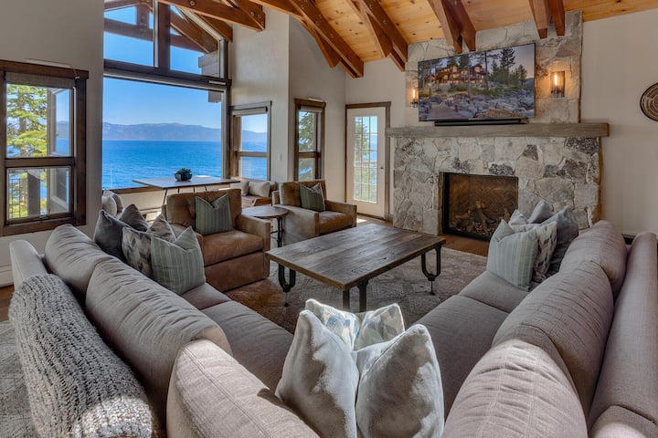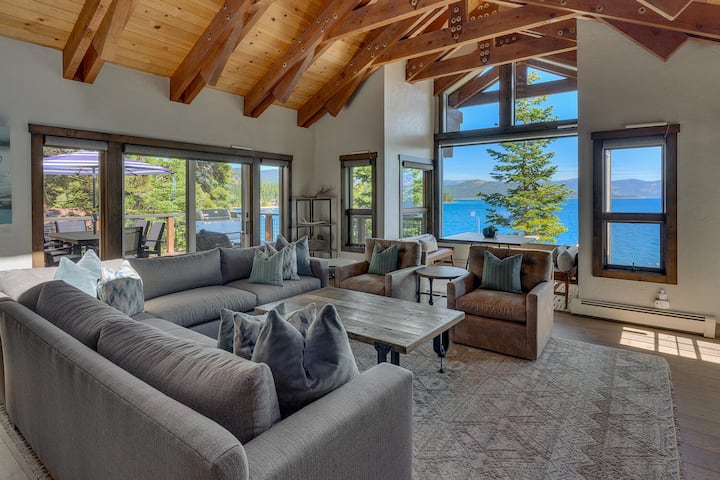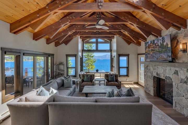 مع ستة طوابق إجمالية تمتد على ثلاثة مستويات، وحوض استحمام ساخن مع إطلالات بانورامية و 100' من واجهة البحيرة، لن تجد أي نقص في طرق اللعب والاسترخاء في بيت تأجير العطلات المطل على بحيرة Carnelian Bay. تخلق مخطط الطابق المفتوح والنوافذ الكبيرة التي تم تجديدها بتشطيبات مخصصة مساحة مشرقة ومريحة للاستمتاع بإطلالات خلابة على البحيرة الزرقاء. تكثر الرفاهية، من المطبخ الواسع إلى الجناح الرئيسي الذي يحتوي على مدفأة وأربعة رؤوس دش. استمتع بالاسترخاء مع العائلة والأصدقاء في المناطق المشتركة الكبيرة. ثم تراجع إلى الخصوصية، واستمتع بالشرفات التي تزين أربع غرف نوم من أصل خمس غرف نوم. في حين أن Sunset Blue هو بالتأكيد رائع في الصيف، إلا أن الموقع المركزي مثالي على مدار السنة مع سهولة الوصول إلى منتجعات التزلج ذات المستوى العالمي والأنشطة الشتوية. استمتع بالنعيم الذي لا نهاية له وغروب الشمس في جبال الألب وأيام بحيرة تاهو المثالية في هذا البيت الجميل المطل على البحيرة.