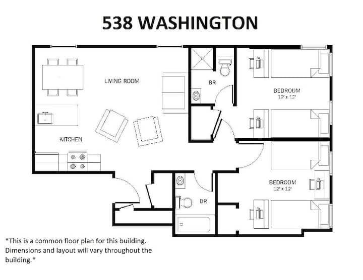 224 - شقة مريحة بغرفتي نوم في الشارع الرئيسي!