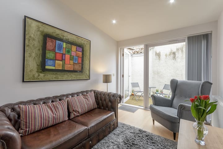 غرفة نوم واحدة أنيقة في موقع مركزي مع حديقة خاصة