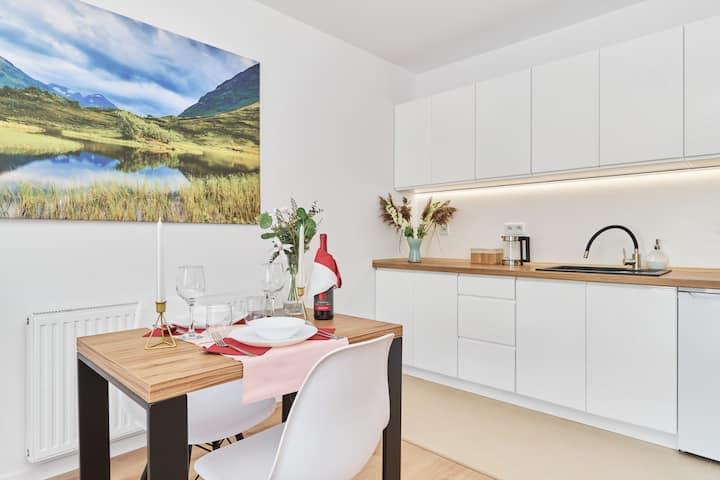 شقة أنيقة في شارع Madalińskiego هي مساحة عملية مع إقامة لأربعة أشخاص. تعد الشقة الأنيقة بشكل رائع والتي تبلغ مساحتها 39 مترًا مربعًا خيارًا مثاليًا لقضاء عطلة عائلية. تحتوي الشقة على غرفة معيشة كبيرة مع منطقة لتناول الطعام ومطبخ صغير وغرفة نوم مع سرير مزدوج مريح وحمام خاص. بالإضافة إلى ذلك، فإن الشرفة التي تحتوي على أثاث الحديقة وإطلالة على المناطق المحيطة هي المكان المثالي للاسترخاء مع فنجان من القهوة اللذيذة. لوحة ألوان متناغمة وإكسسوارات ممتعة من الناحية الجمالية ستسعد العين في كل خطوة. بفضل المعدات والمفروشات الشاملة بأسلوب عصري، يعد التصميم الداخلي ملاذًا مريحًا للغاية بالقرب من وسط المدينة. إنه خيار مثالي للضيوف الذين يقدرون الراحة والوظائف، ولكن أيضًا الجماليات. تم تجهيز الشقة بجميع الأساسيات اللازمة للاسترخاء. لتسهيل بداية كل إقامة، يتم توفير مجموعة مجانية من مستحضرات التجميل (الصابون والشامبو وجل الاستحمام) والمناشف والبياضات. تأتي الشقة مع مساحة خاصة لوقوف السيارات في المرآب تحت الأرض.
