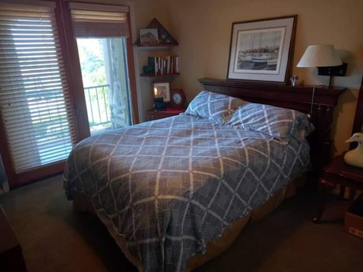 غرفة مع سرير بحجم كوين ومدخل خاص وإطلالة