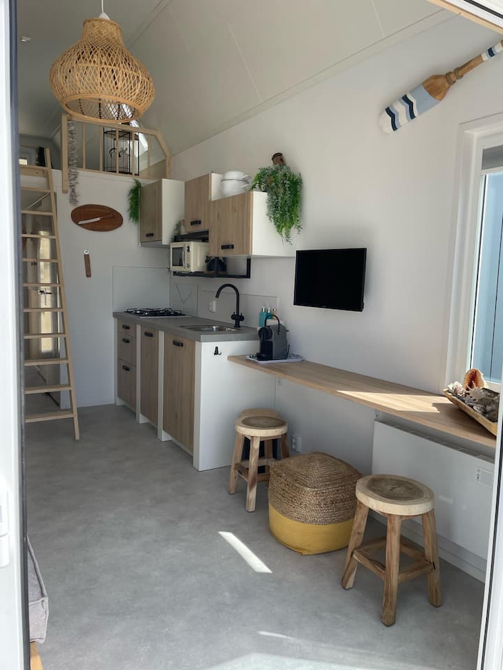 بيت شاطئي مريح مع سوب وزلاجة وأرجوحة شبكية