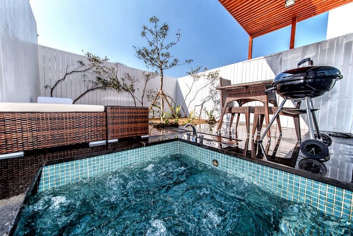 (1302) منتجع صحي في الهواء الطلق (ماء ساخن مجاني) / رغوة استحمام / شواء فردي / إقامة عاطفية
