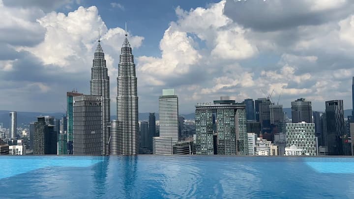 بلاتينيوم 2 بواسطة كيميرو | إطلالة على برجي التوأم في مركز مدينة كوالالمبور · غرفة نوم فاخرة بإطلالة على المدينة [موقف سيارات مجاني]