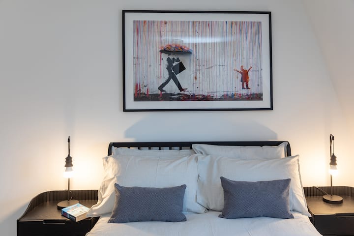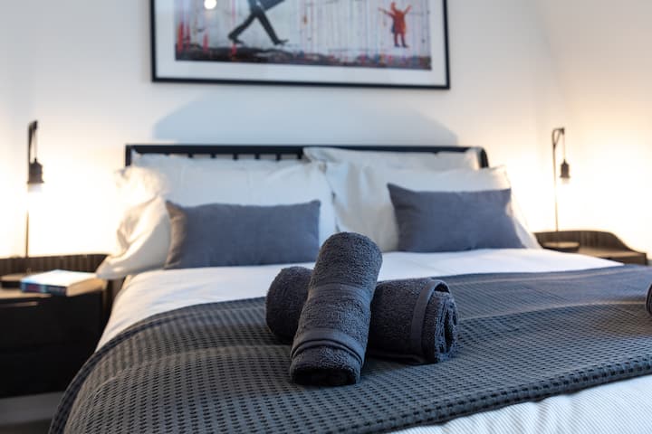 موقف سيارات مجاني عصري للغاية، غرفتي نوم وحمامين