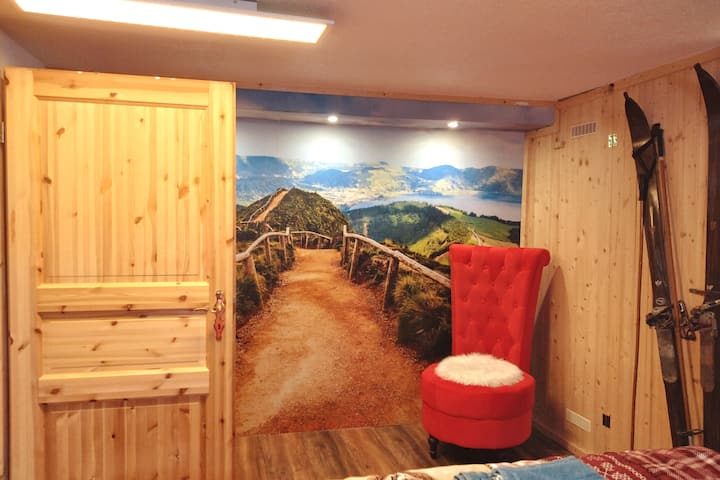 غرفة في كوخ التزلج على مقربة من الطريق السريع في الطابق السفلي (بدون مطبخ)