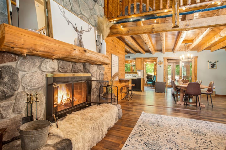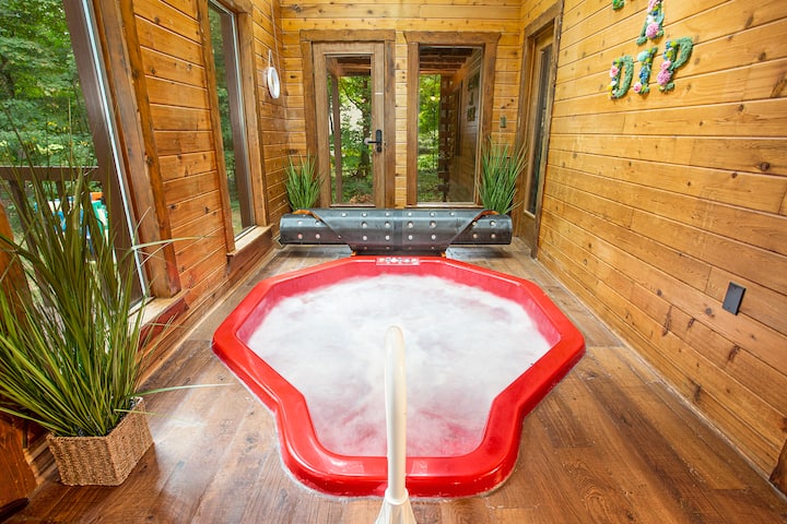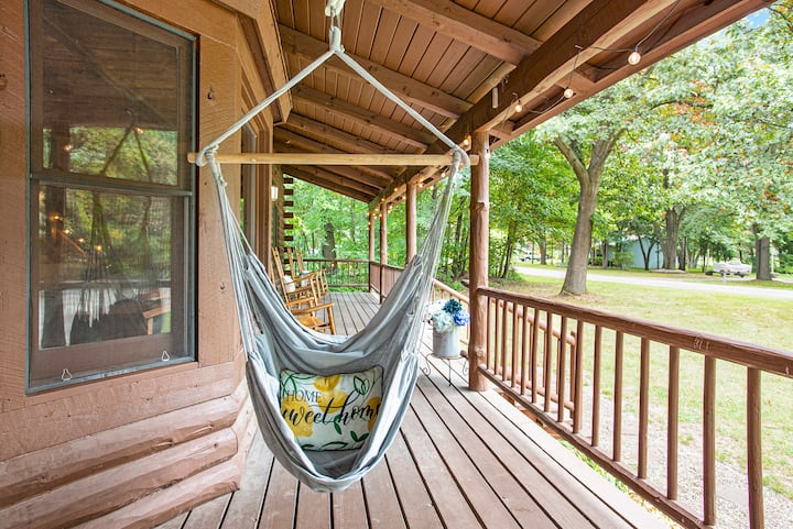 كوخ خشبي في ملعب الجولف مع حوض استحمام ساخن وصالة سينما