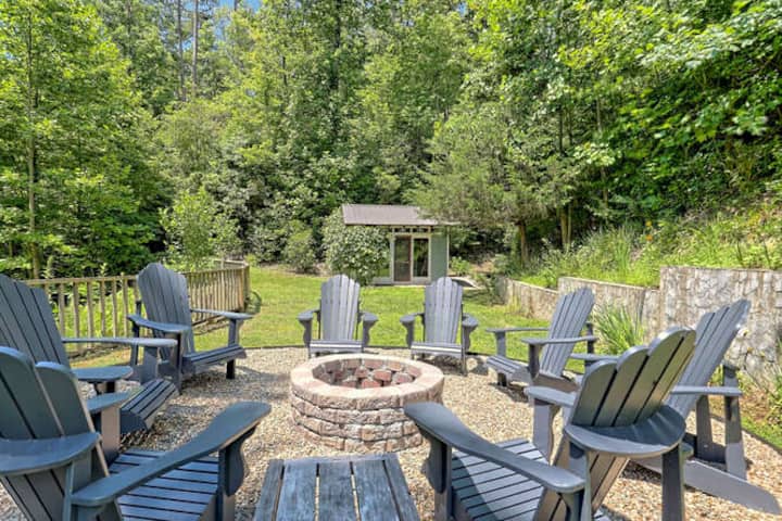 نحن عائلة براندنبورغ، ونحن المالكون الفخورون لـ Camp Fox Trot + Bunkhouse at Burton in Clayton, GA.