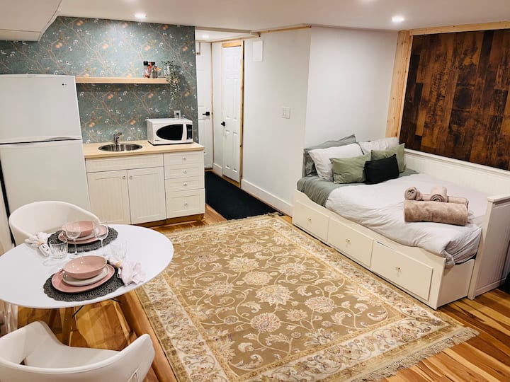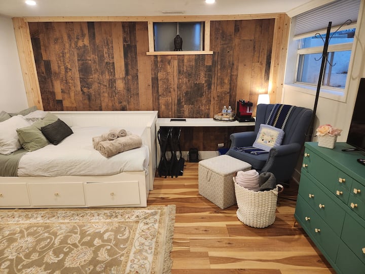 استوديو خاص مريح، حمام داخلي وموقف سيارات مجاني