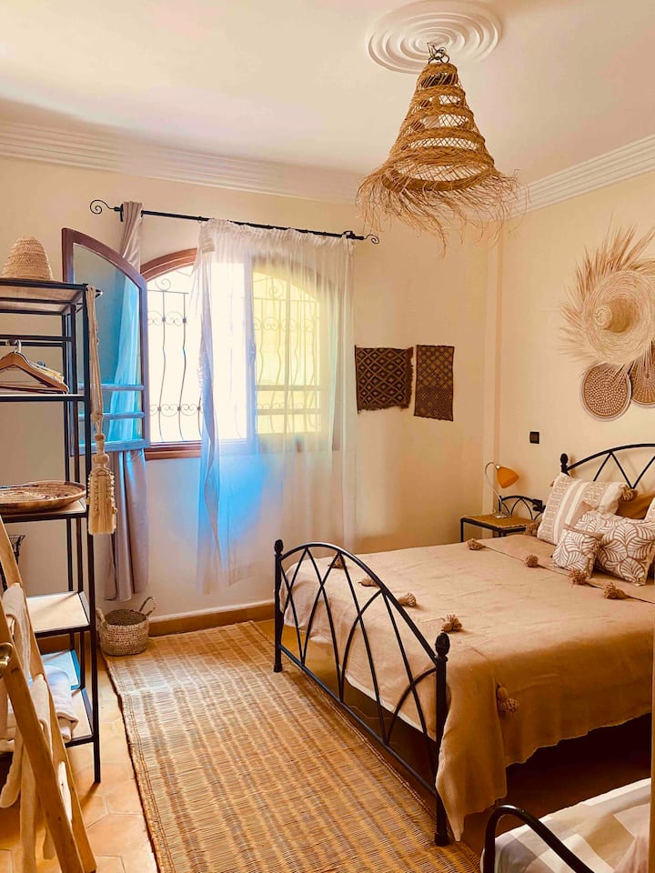 غرفة نوم بسرير مزدوج فيلا بوهيم تامراغت