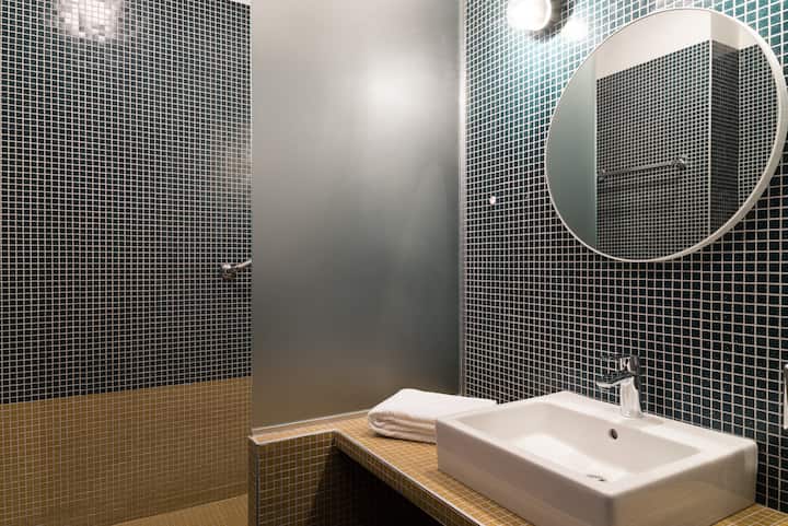 تحتوي الاستوديوهات على سرير مزدوج أو سريرين صغيرين. تم تجهيز المسكن بمغسلة مشتركة.
