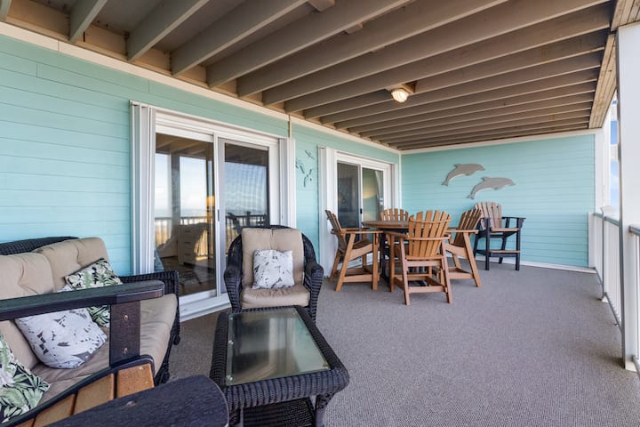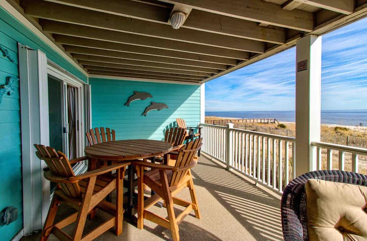 أنا وزوجي نحب الشاطئ. هذا هو بيتنا المواجه للشاطئ الذي يوفر الاسترخاء والراحة - هذا ابتعد عنا عن كل شيء! كل عام نقوم بترقية الشقة مما يجعلها أفضل وأفضل كل عام. نستمع إلى العديد من الضيوف الذين أقاموا هنا عامًا بعد عام وترقية توقعاتهم. مثل معظم ضيوفنا، نقضي معظم الوقت على "سطح السفينة الضخم" - فريد جدًا في شاطئ كارولينا. يمكننا رؤية الدلافين (إذا كنا محظوظين)، والاستمتاع بقهوة الصباح/الإفطار والنبيذ/العشاء في المساء. أيضًا، فريدة من نوعها هي أن لدينا سطحًا ثانيًا خارج غرفة الضيوف التي تقع مباشرة فوق منطقة حمام السباحة بالحجم الكامل. رائع إذا كان لديك أطفال/أطفال كبار حيث يمكنك مشاهدتهم من الشقة. نتمنى أن تستمتع بالشقة كما نفعل مع ضيوفنا العائدين كل عام!