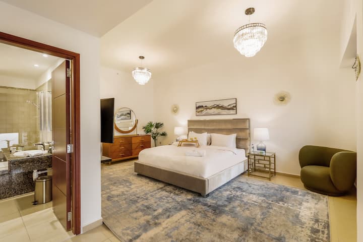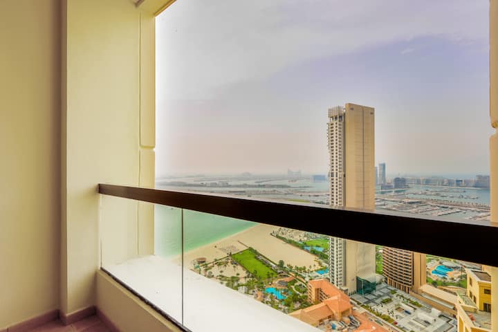 غرفة نوم واحدة مذهلة مع إطلالة على النخيل والبحر
